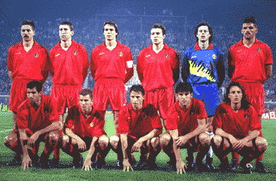 Belgium Position Dress # Club ----------------------------- -------- ------- ---- Albert, Philippe DEF 4 Anderlecht Boffin, Danny MID 16 Anderlecht Borkelmans, Vital DEF 3 Club Brugge Czerniatynski, Alexandre FWD 11 Mechelen De Wilde, Filip GK 12 Anderlecht De Wolf, Michel DEF 14 Anderlecht Degryse, Marc FWD 9 Anderlecht Emmers, Marc DEF 15 Anderlecht Grun, Georges DEF 13 Parma (Ita) Medved, Dirk DEF 2 Club Brugge Nilis, Luc FWD 8 Anderlecht Preud'homme, Michel GK 1 KV Mechelen Renier, Pascal DEF 22 Club Brugge Scifo, Vincenzo MID 10 Monaco (Fra) Smidts, Rudi DEF 5 Antwerp Staelens, Lorenzo MID 6 Club Brugge Van Der Elst, Franky MID 7 Club Brugge Van Der Heyden, Stefan FWD 21 Club Brugge Van Meir, Eric MID 19 Charleroi Verlinden, Dany GK 20 Club Brugge Weber, Josip FWD 17 Cercle Brugge Wilmots, Marc FWD 18 Standard Liege