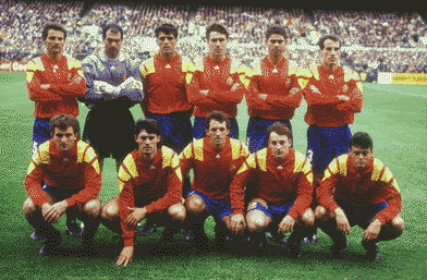 Spain Position Dress # Club ----------------------------- -------- ------- ---- Alkorta, Rafael DEF 18 Real Madrid Bakero, Jos� FWD 10 Barcelona Barjuan, Sergi MID 12 Barcelona Begiristain, Aitor FWD 11 Barcelona Camarasa, Jos� DEF 4 Valencia Ca�izares, Jose GK 13 Celta Casta�o, Juan FWD 14 Sporting Gij�n Fern�ndez, Abelardo DEF 5 Sporting Gij�n Ferrer, Albert DEF 2 Barcelona Goicoechea, Juan FWD 7 Barcelona Gonzalez, Salvador DEF 17 Deportivo La Coru�a Guardiola Sala, Josep MID 9 Barcelona Guerrero, Julen FWD 8 Atl�tico Bilbao Lopetegui, Julian GK 22 Logro�es Martinez, Luis MID 21 Real Madrid Mi�ambres, Felipe FWD 16 Tenerife Nadal, Miguel MID 20 Barcelona Otero Bouzos, Jorge MID 3 Celta Perez Caminero, Jos� DEF 15 Atl�tico Madrid Ruiz Hierro, Fernando MID 6 Real Madrid Salinas Fernandez, Julio FWD 19 Barcelona Zubizarreta, Andoni GK 1 Barcelona